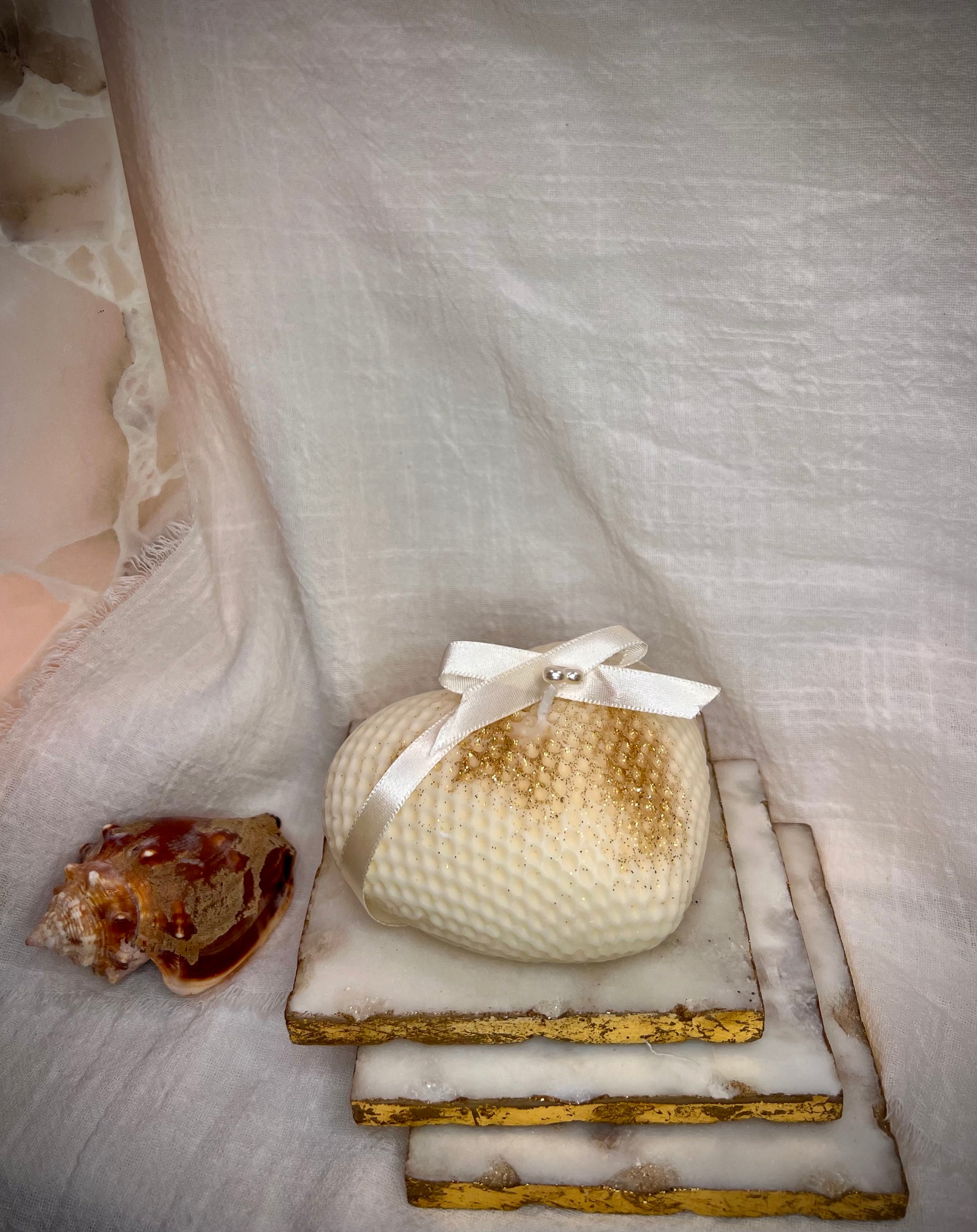 Románticas y luminosas, perfectas para regalar o decorar en temporada festiva. Con su brillo dorado y acabado artesanal, cada una es única y llena de amor.